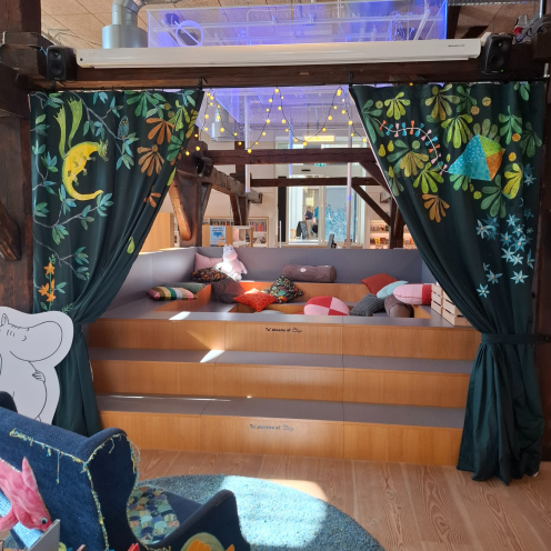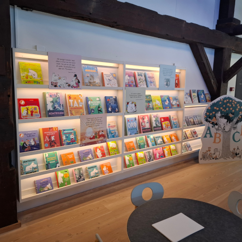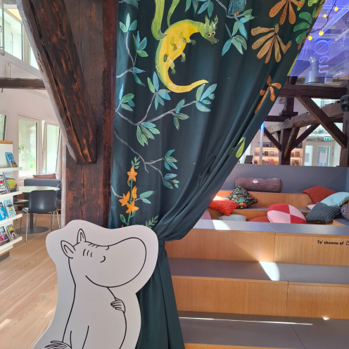 Også i børnebiblioteket fejrede vi Tove Jansson. Her kunne børn og familier gå på opdagelse i Mumidalens magiske univers og læse de elskede mumibøger.